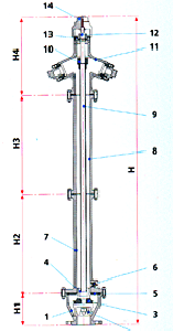 Hidrant vanayı kumanda eden mil, ana gövdeyi oluşturan döküm parçalar ve hortum bağlantı rekorundan (kurtağzı) meydana gelmektedir.